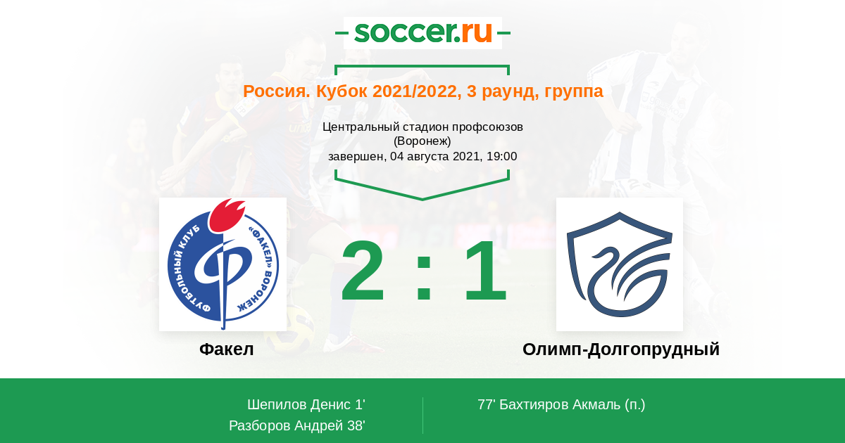 Протокол матча Факел против Олимп-Долгопрудный