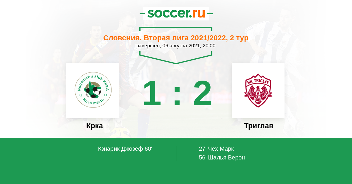 Протокол матча Крка против Триглав