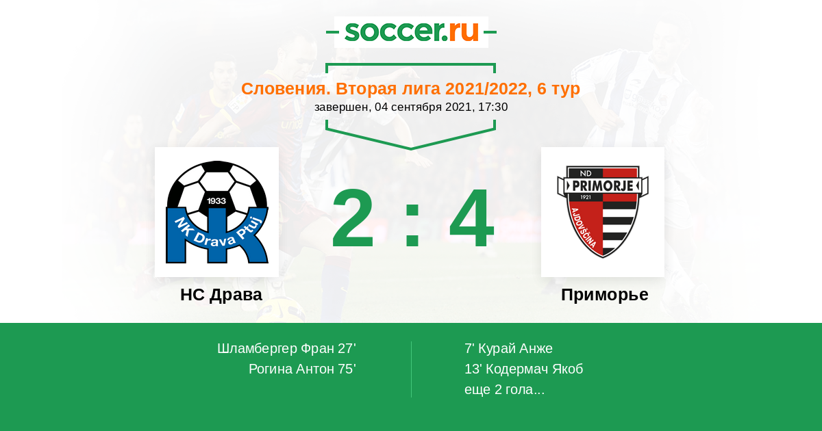 Протокол матча НС Драва против Приморье