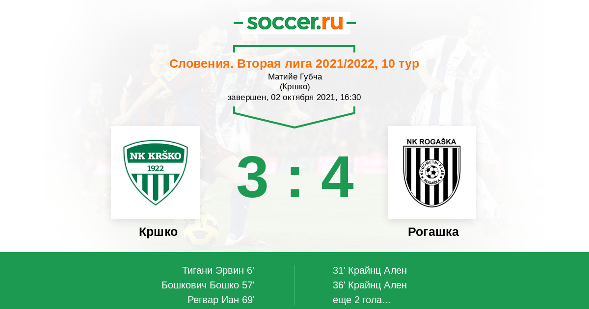 Протокол матча Кршко против Рогашка