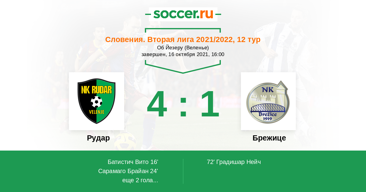 Протокол матча Рудар против Брежице