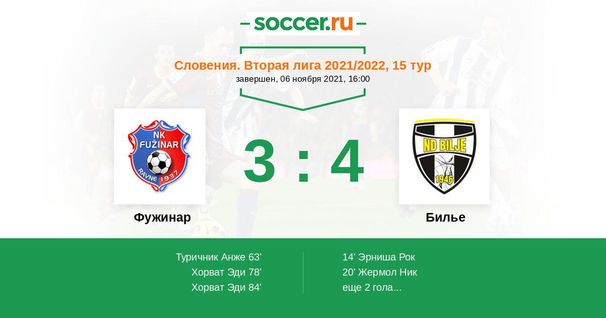 Протокол матча Фужинар против Билье