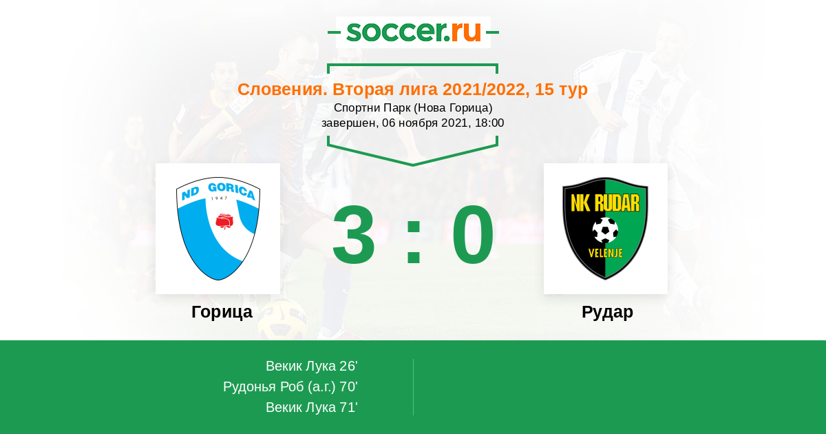 Протокол матча Горица против Рудар