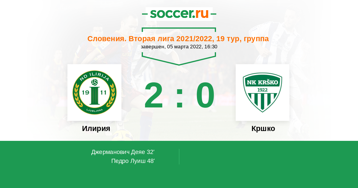 Протокол матча Илирия против Кршко