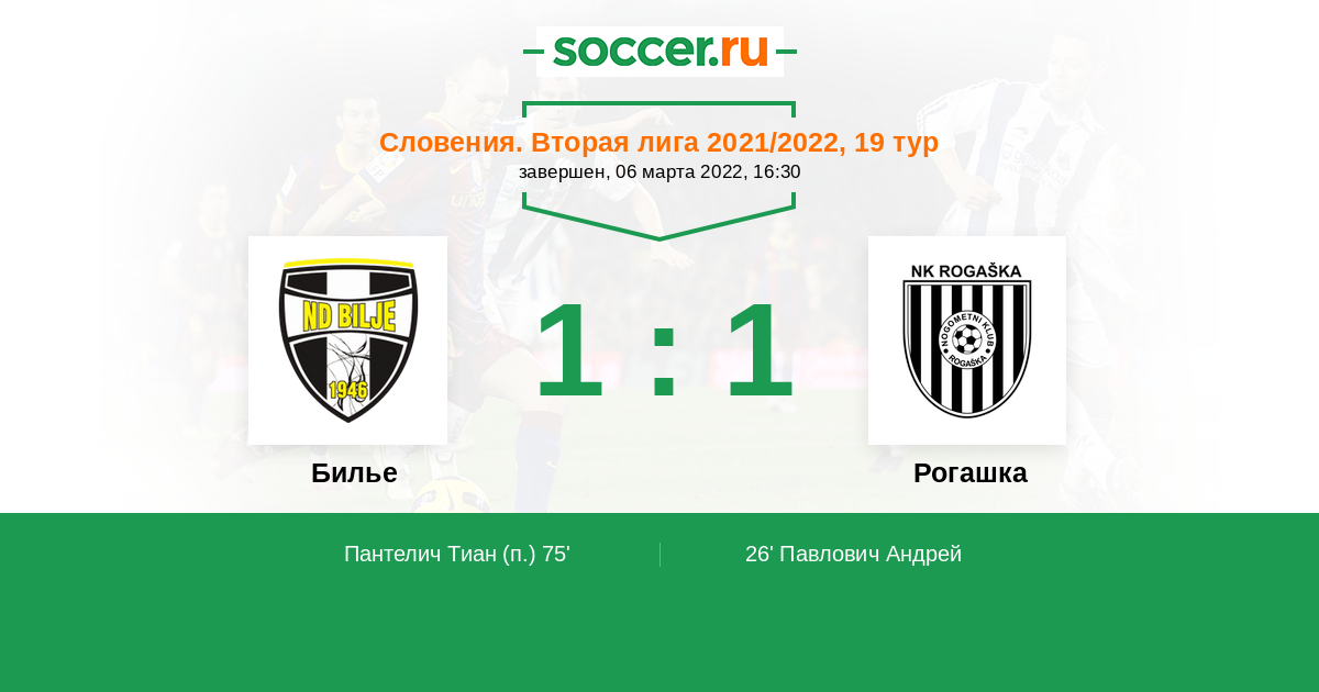 Протокол матча Билье против Рогашка