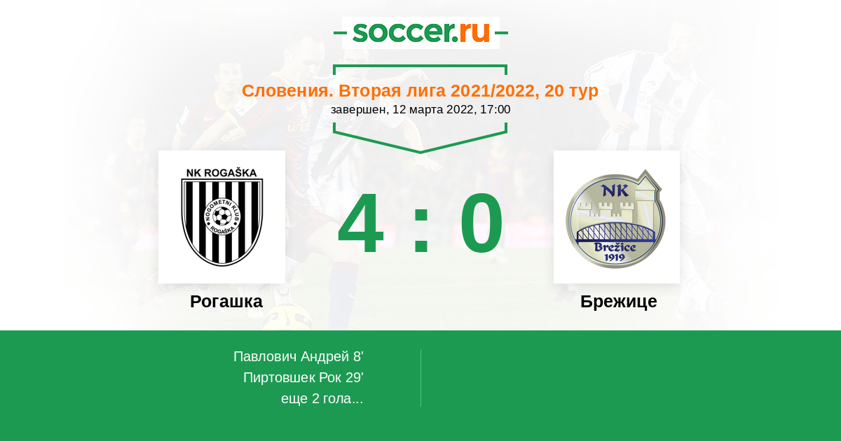 Протокол матча Рогашка против Брежице