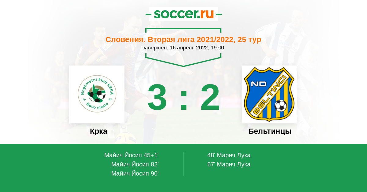 Протокол матча Крка против Бельтинцы