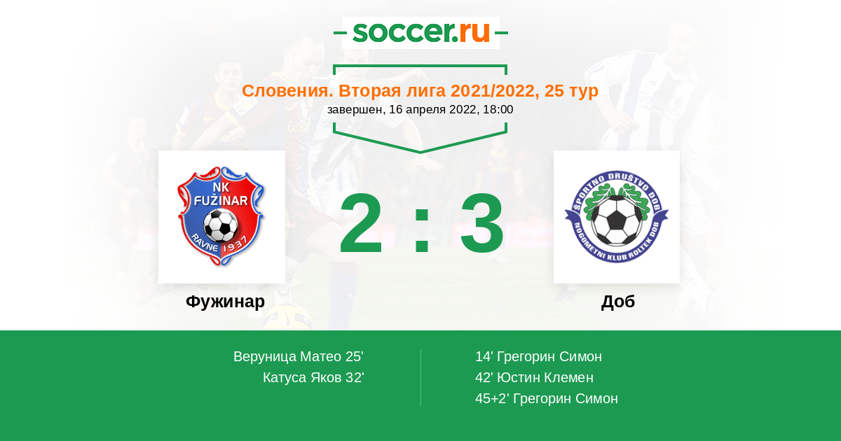 Протокол матча Фужинар против Доб