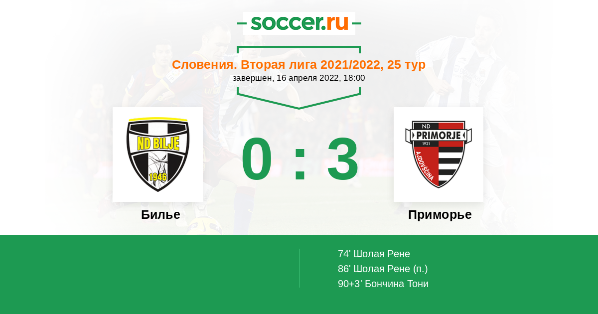 Протокол матча Билье против Приморье