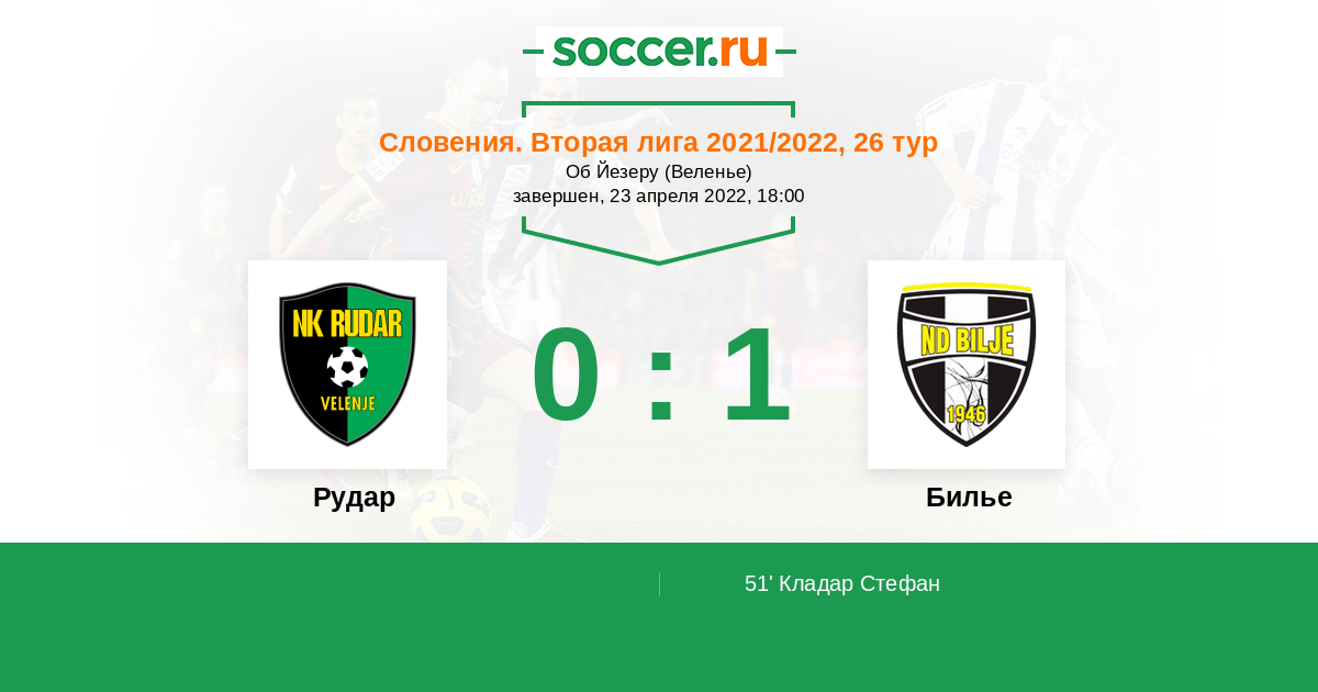 Протокол матча Рудар против Билье