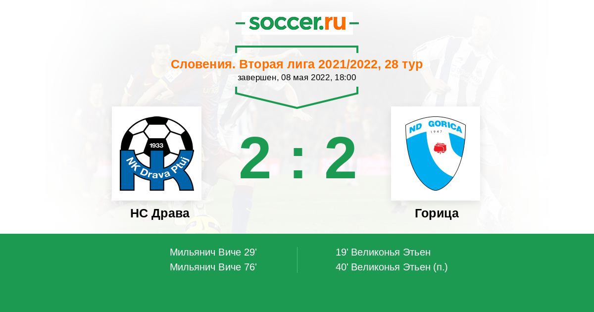 Протокол матча НС Драва против Горица