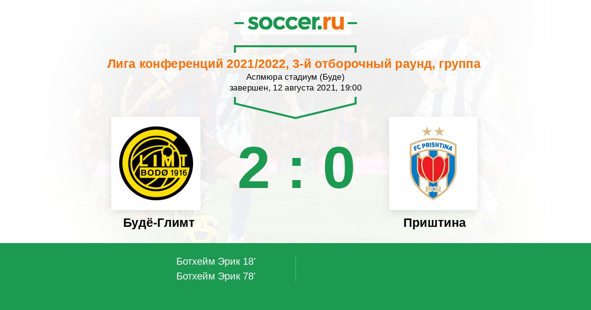 Первый матч сенсационно завершился победой Приштины со счетом 2:1. Но ответный матч ожидаю разгром Приштины... Все-таки норвежский футбол посильнее будет. Тем более они играют дома, а дома и стены помогают.