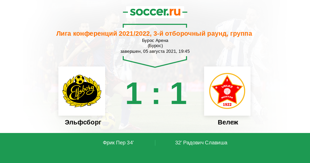Протокол матча Эльфсборг против Вележ