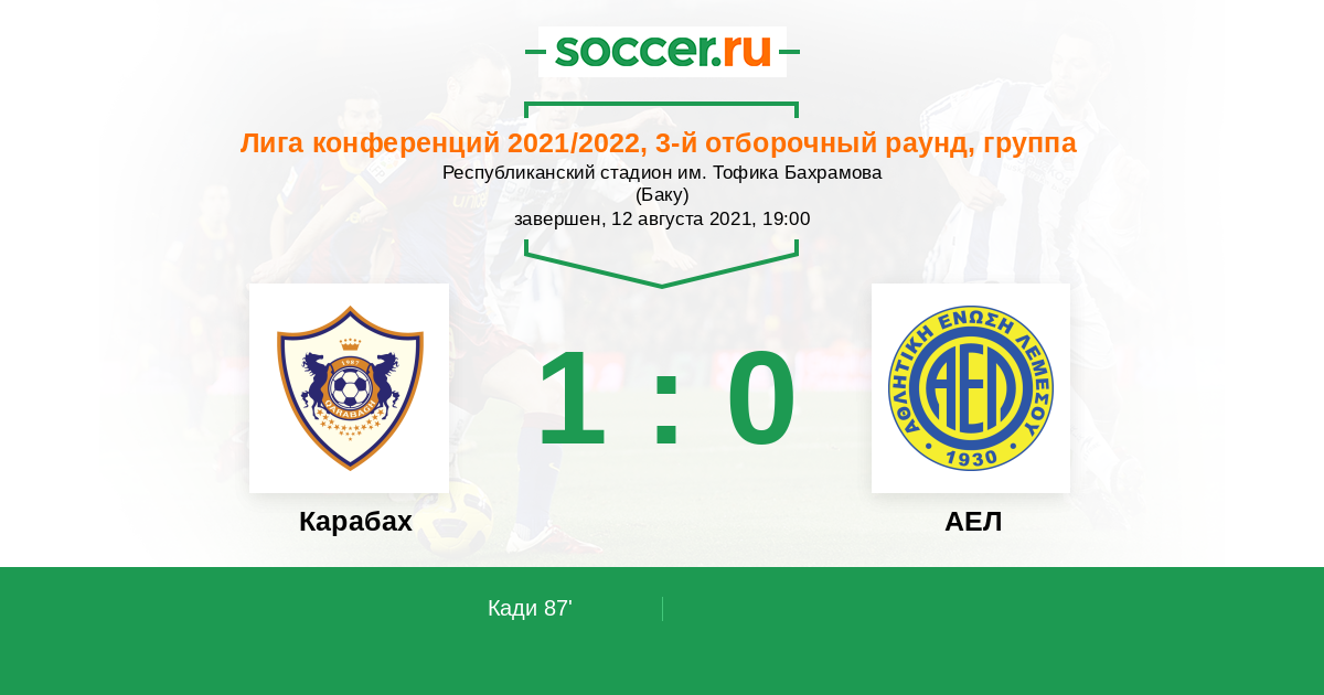 Протокол матча Карабах против АЕЛ