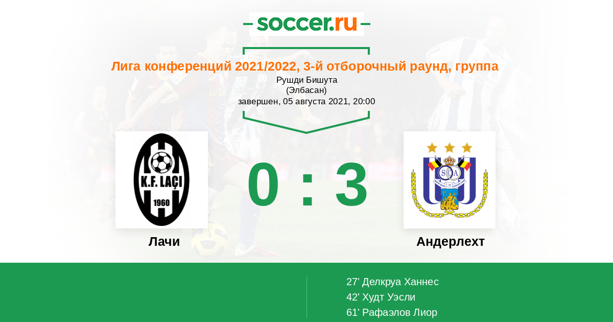 Протокол матча Лачи против Андерлехт