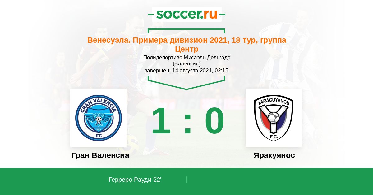 Протокол матча Гран Валенсиа против Яракуянос