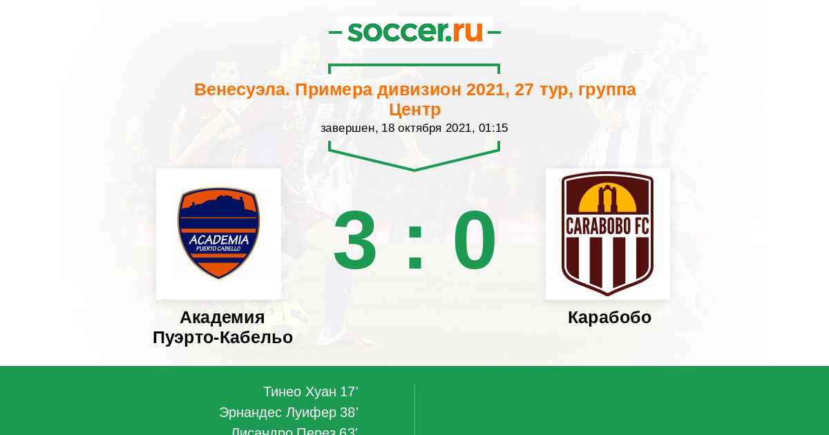 Протокол матча Пуэрто-Кабельо против Карабобо