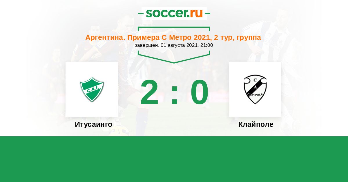 Аргентина. Примера С Метро 01.06.2025 Клайполе Логотип футбольный клуб Клайполе 0:1 Логотип футбольный клуб Итусаинго Итусаинго