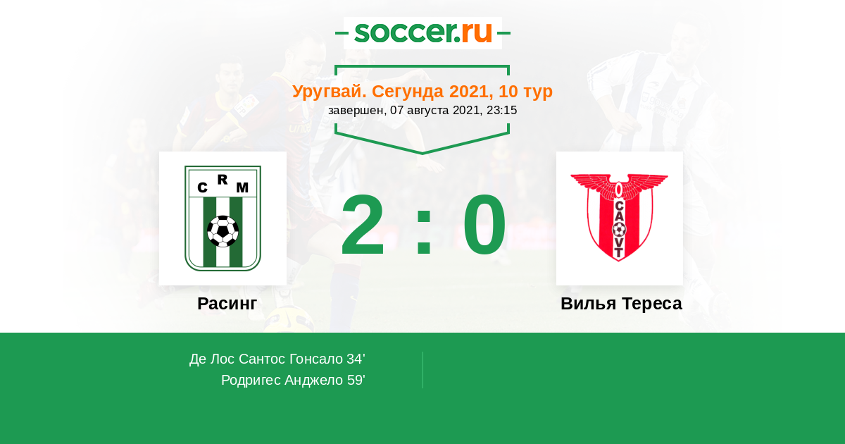 Протокол матча Расинг против Вилья Тереса