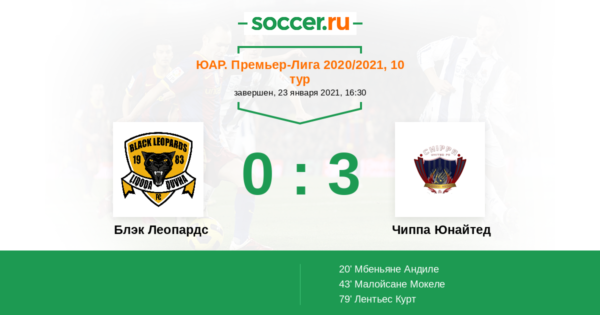 Протокол матча Блэк Леопардс против Чиппа Юнайтед