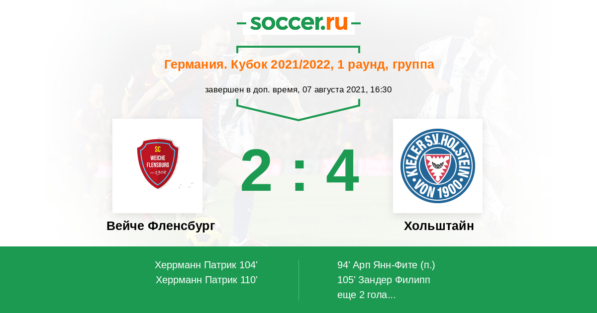 Протокол матча Вейче Фленсбург против Хольштайн
