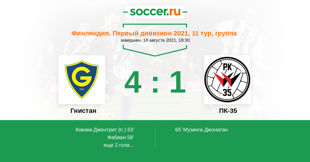 Протокол матча Гнистан против ПК-35