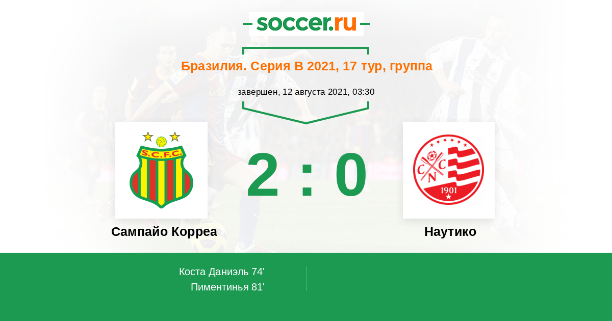 Протокол матча Сампайо Корреа против Наутико