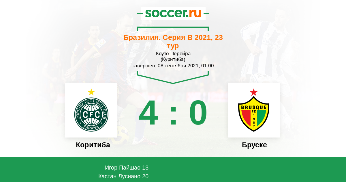 Протокол матча Коритиба против Бруске