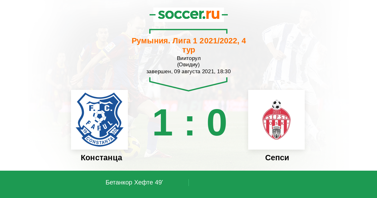 Протокол матча Фарул против Сепси