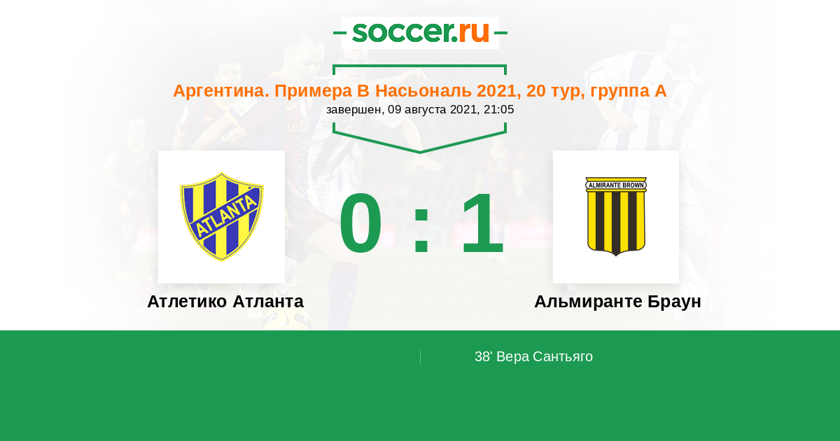 Протокол матча Атлетико Атланта против Альмиранте Браун