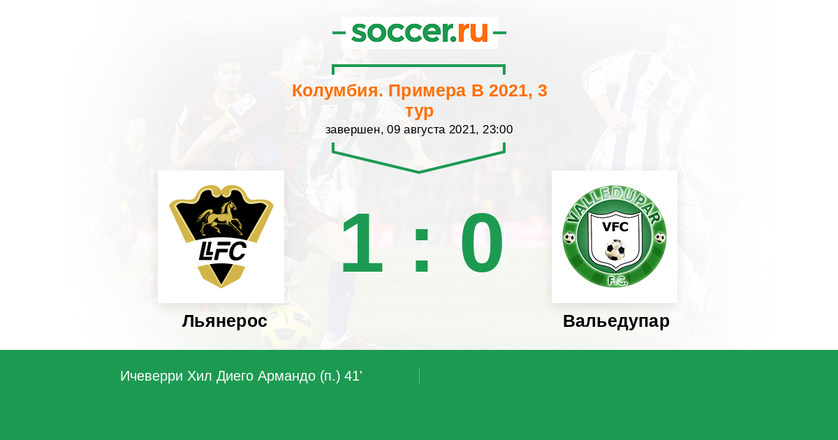 Протокол матча Льянерос против Вальедупар