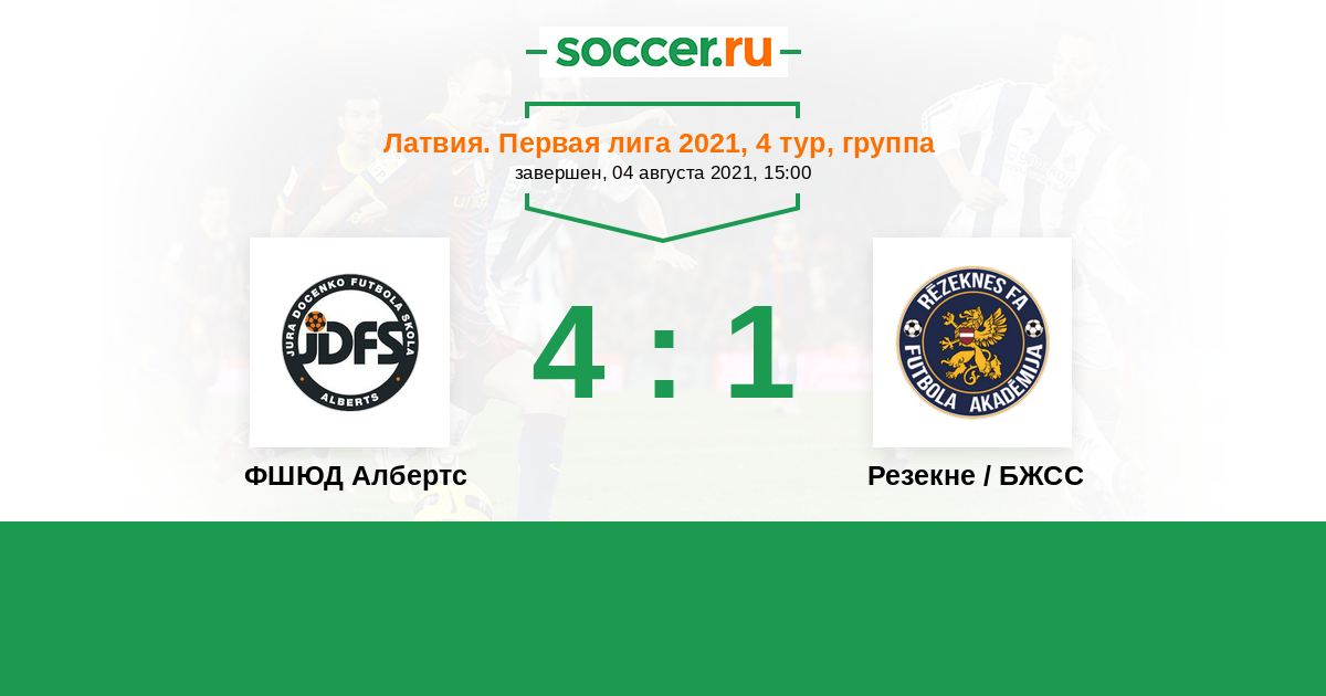 Латвия. Первая лига 09.10.2021 Резекне / БЖСС Логотип футбольный клуб Резекне / БЖСС 2:0 Логотип футбольный клуб ФШЮД Албертс (Рига) ФШЮД Албертс