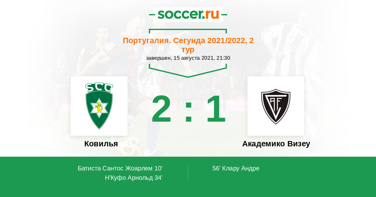 Протокол матча Ковилья против Академико Визеу