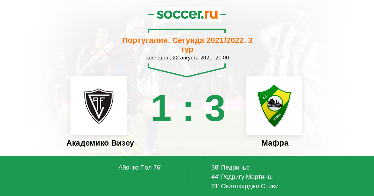 Протокол матча Академико Визеу против Мафра