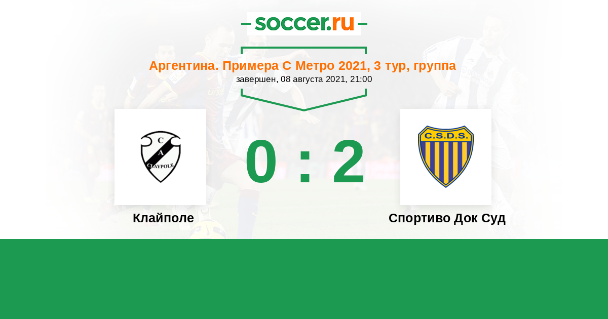 Аргентина. Примера Д 03.04.2010 Спортиво Док Суд Логотип футбольный клуб Спортиво Док Суд (Буэнос-Айрес) 1:1 Логотип футбольный клуб Клайполе Клайполе