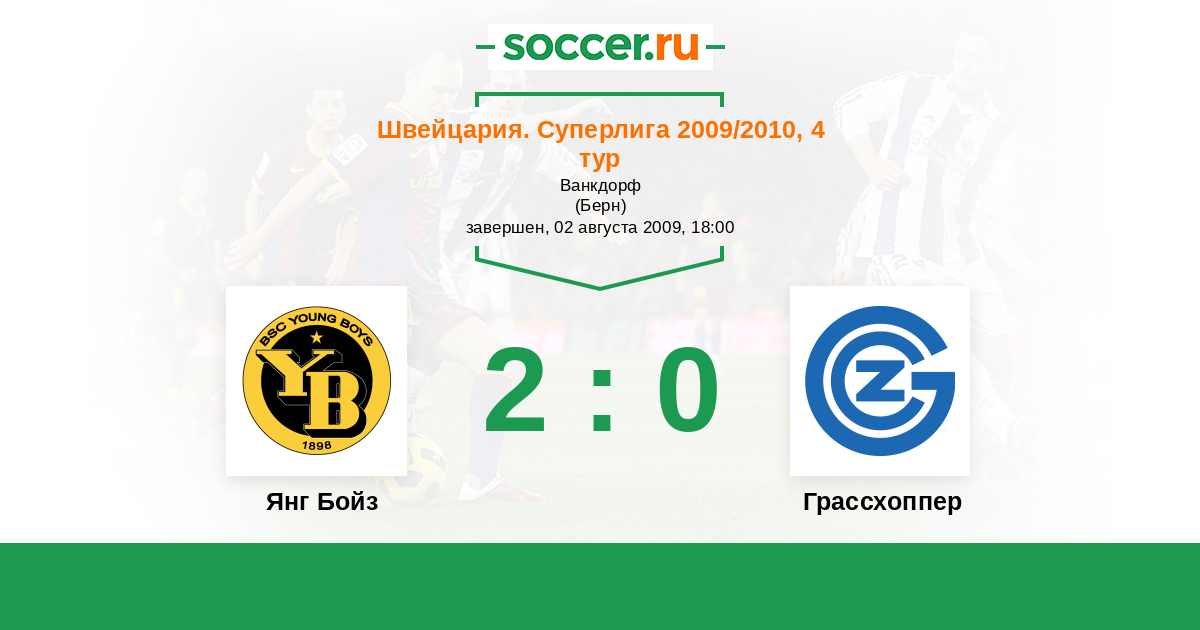 Швейцария. Суперлига 19.04.2009 Янг Бойз Логотип футбольный клуб Янг Бойз (Берн) 3:1 Логотип футбольный клуб Грассхоппер (Цюрих) Грассхоппер