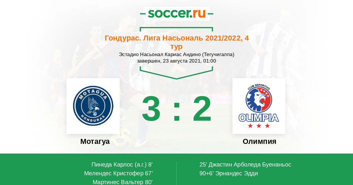 Протокол матча Мотагуа против Олимпия