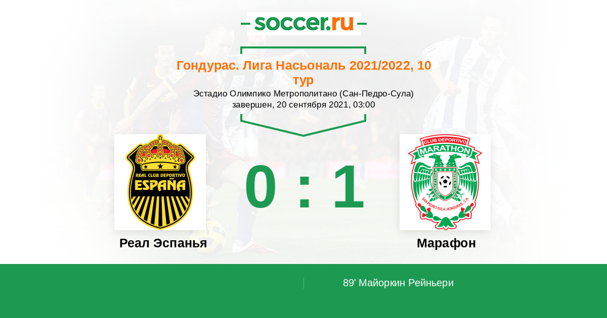 Протокол матча Реал Эспанья против Марафон