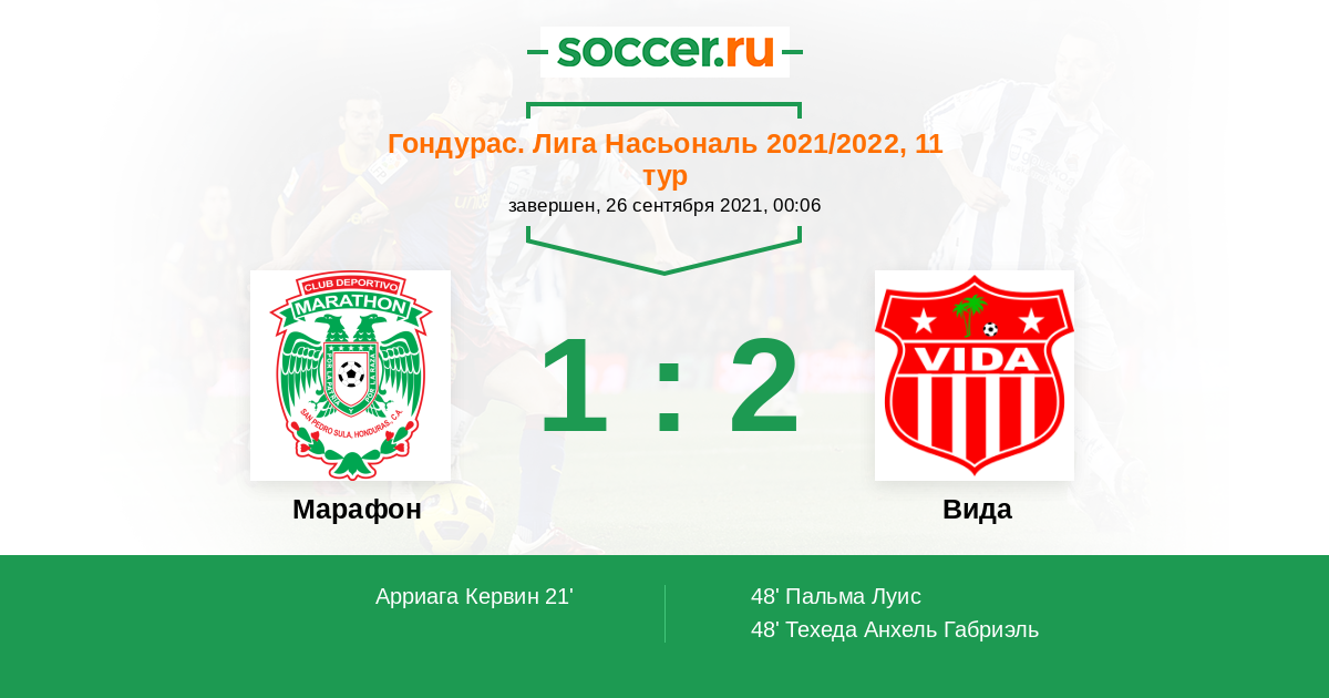 Протокол матча Марафон против Вида