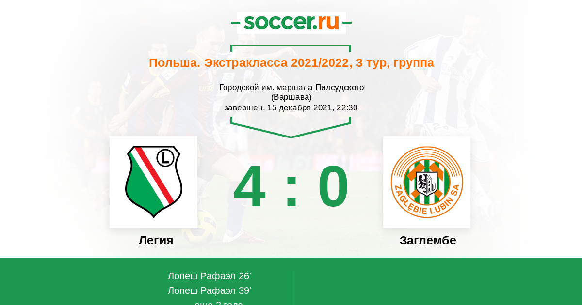 Протокол матча Легия против Заглембе