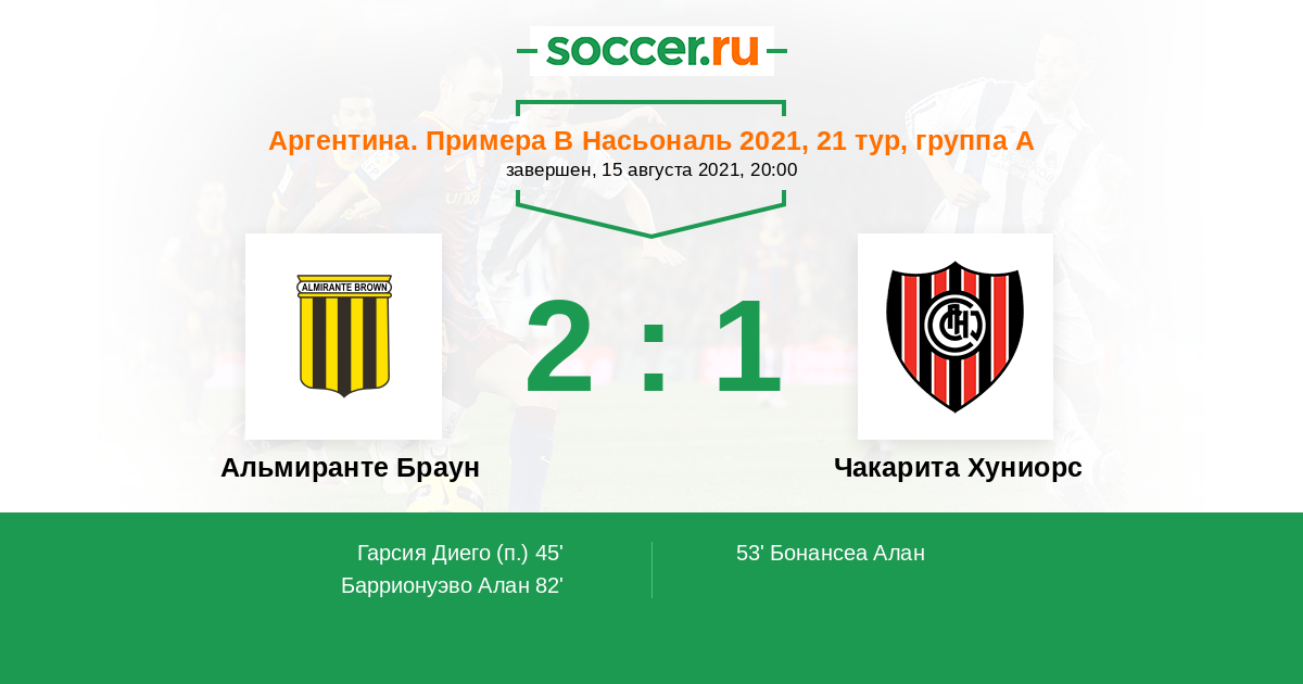 Протокол матча Альмиранте Браун против Чакарита Хуниорс