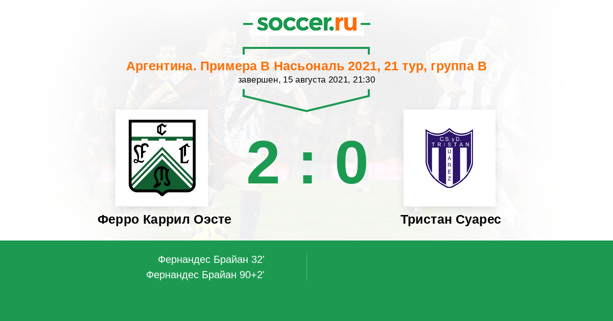 Протокол матча Ферро Каррил Оэсте против Тристан Суарес