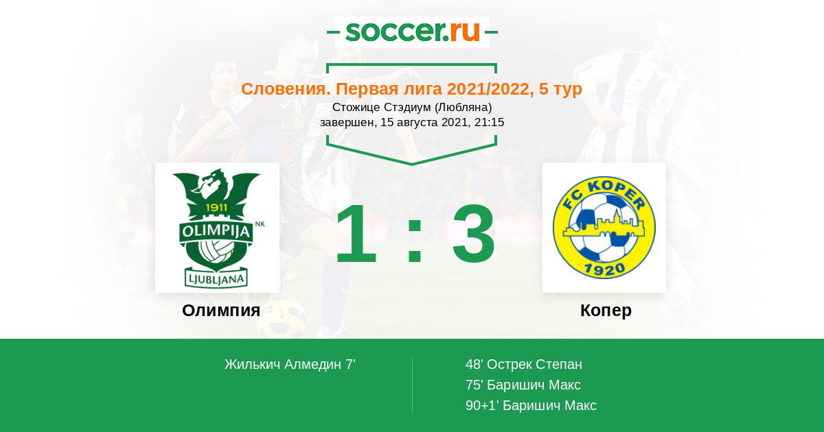 Протокол матча Олимпия против Копер