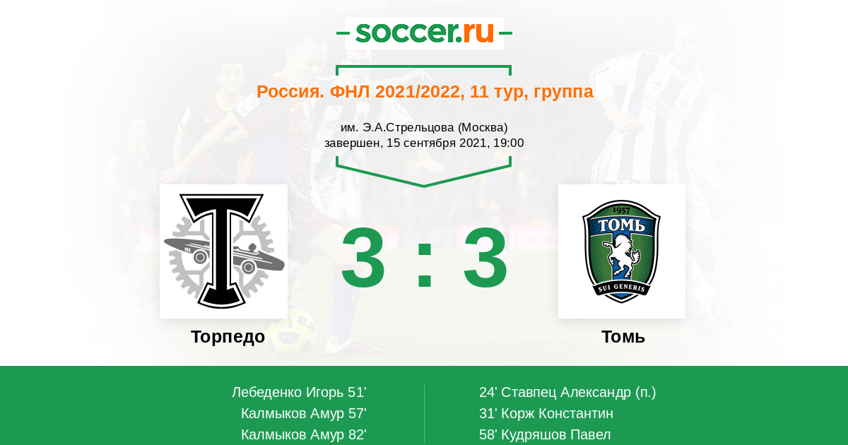 Протокол матча Торпедо против Томь