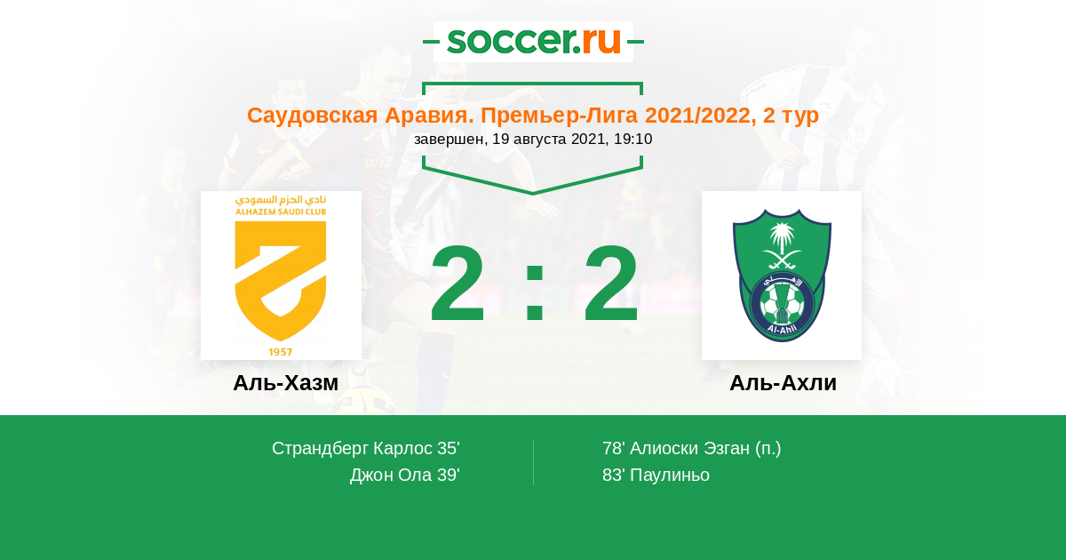 Протокол матча Аль-Хазм против Аль-Ахли