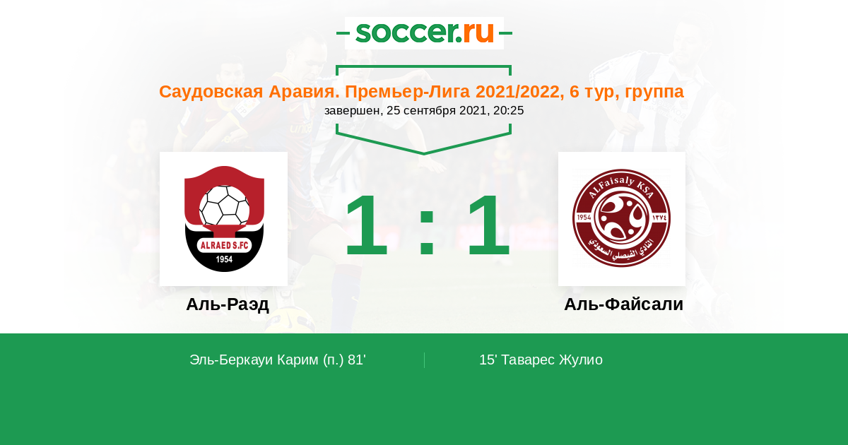 Протокол матча Аль-Раэд против Аль-Файсали