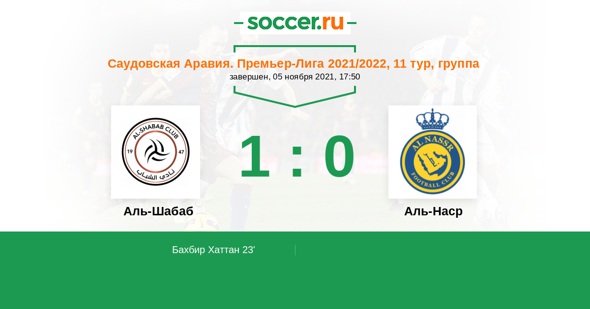 Протокол матча Аль-Шабаб против Аль-Наср