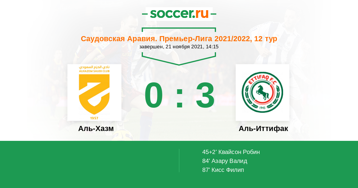 Протокол матча Аль-Хазм против Аль-Иттифак