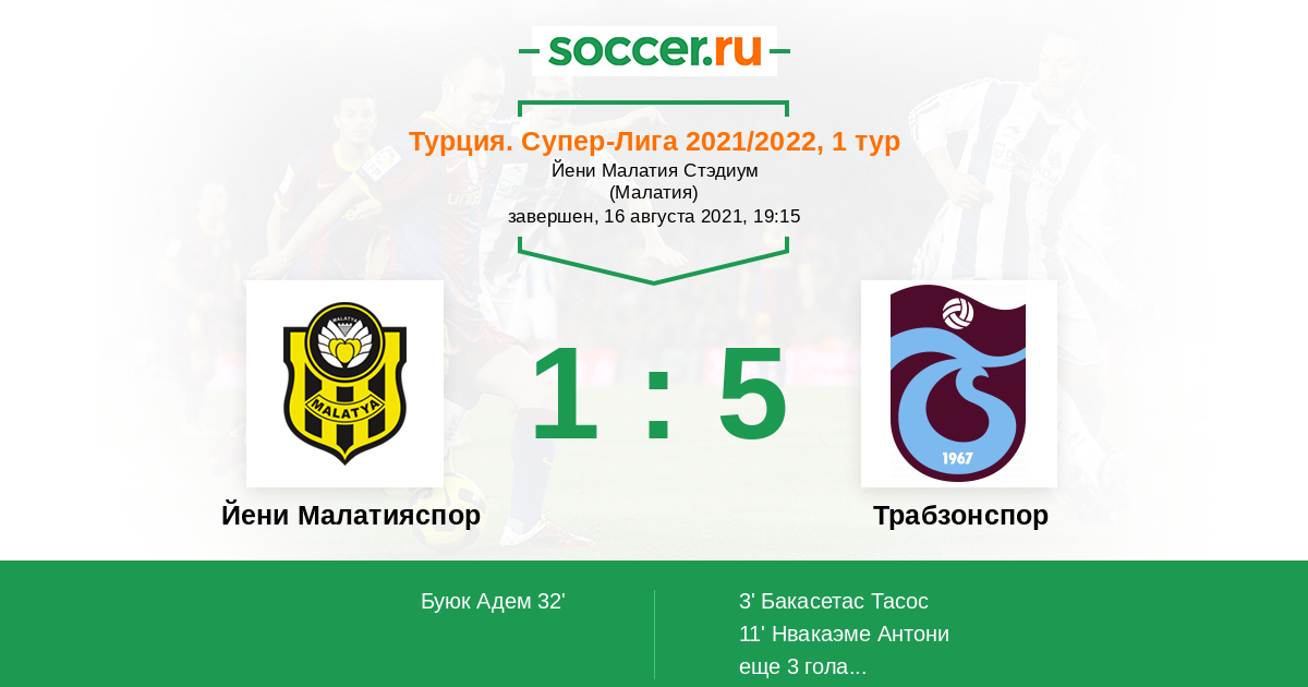 Протокол матча Йени Малатияспор против Трабзонспор