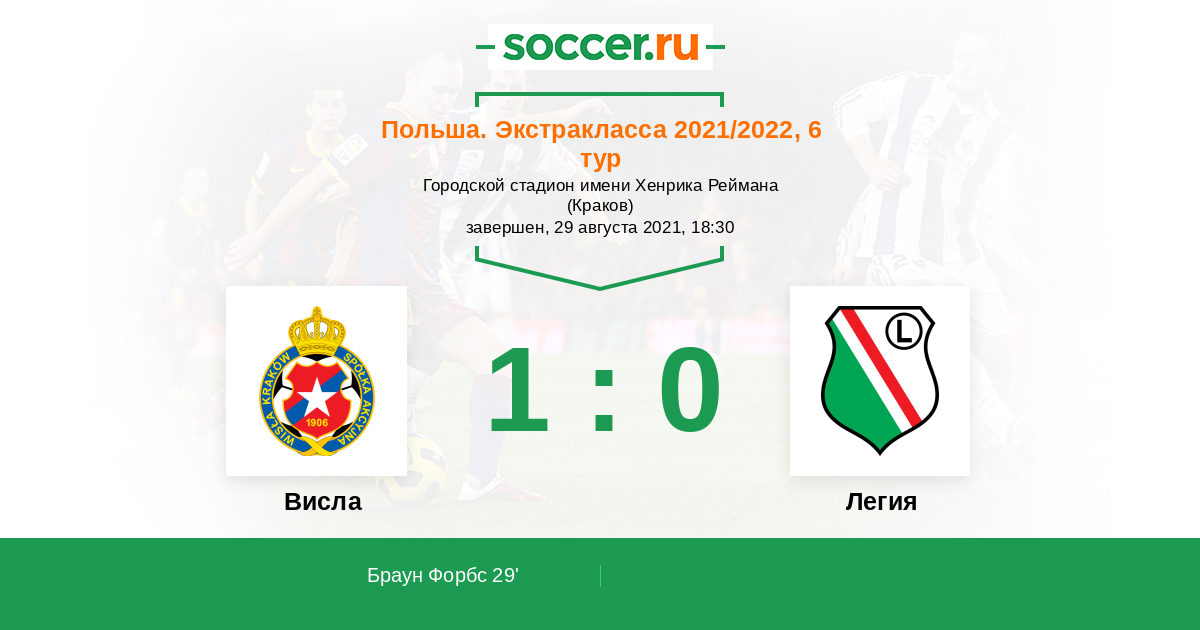 Протокол матча Висла против Легия